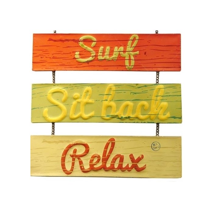 Placa Praia Surf Sit Bach Relax de Metal - 50x33 cm