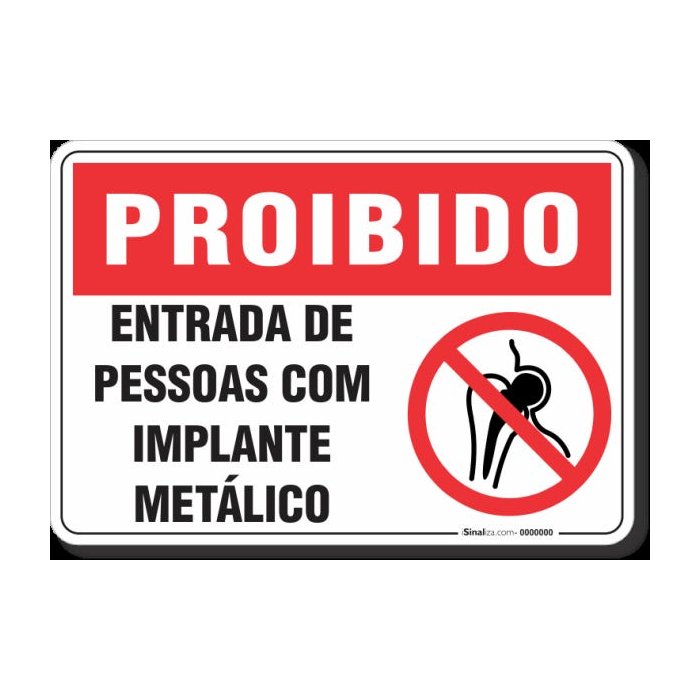 PLACA PROIBIDO ENTRADA DE PESSOAS COM IMPLANTE METÁLICO