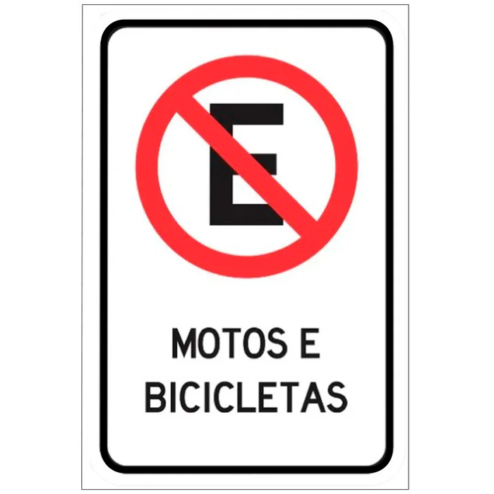A placa "Proibido Estacionar Motos e Bicicletas" é usada para indicar que o estacionamento de motocicletas e bicicletas é proibido em uma área específica. Essa sinalização é importante para manter a organização do estacionamento e garantir que espaços destinados a outros tipos de veículos ou áreas de tráfego não sejam obstruídos.