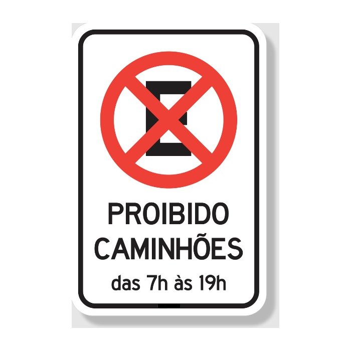 Placa Proibido Parar e Estacionar Caminhões Das 7h Às 19h
