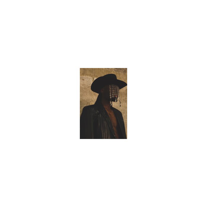 Placa quadro decorativo A4 - 21 x 29,7 close-up da modelo usando chapéu com fios de cristais pendura