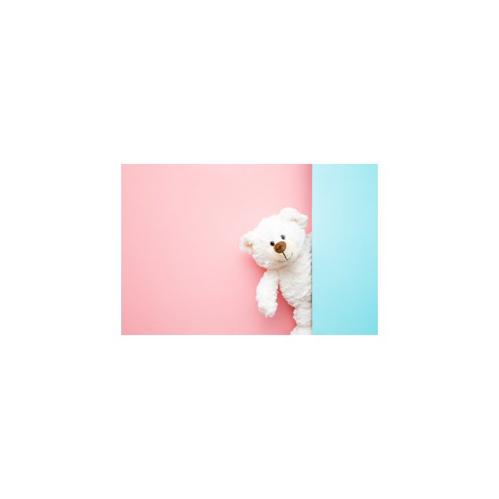 Placa quadro decorativo A4 - 21 x 29,7 ursinho de pelúcia branco sorridente olhando atrás da parede