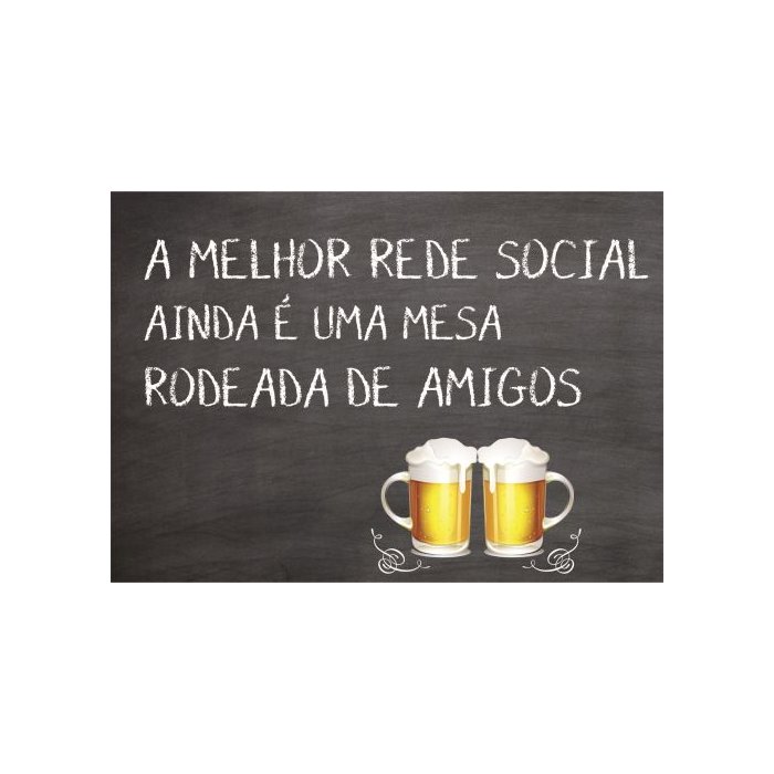 Placa quadro decorativo A5 - 15 x 21 frase a melhor rede social ainda é uma mesa rodeada de amigos