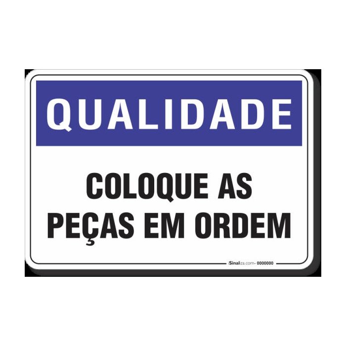 PLACA QUALIDADE COLOQUE AS PEÇAS EM ORDEM