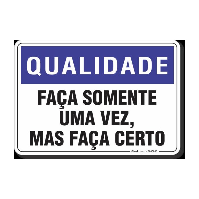 PLACA QUALIDADE FAÇA SOMENTE UMA VEZ MAS FAÇA CERTO