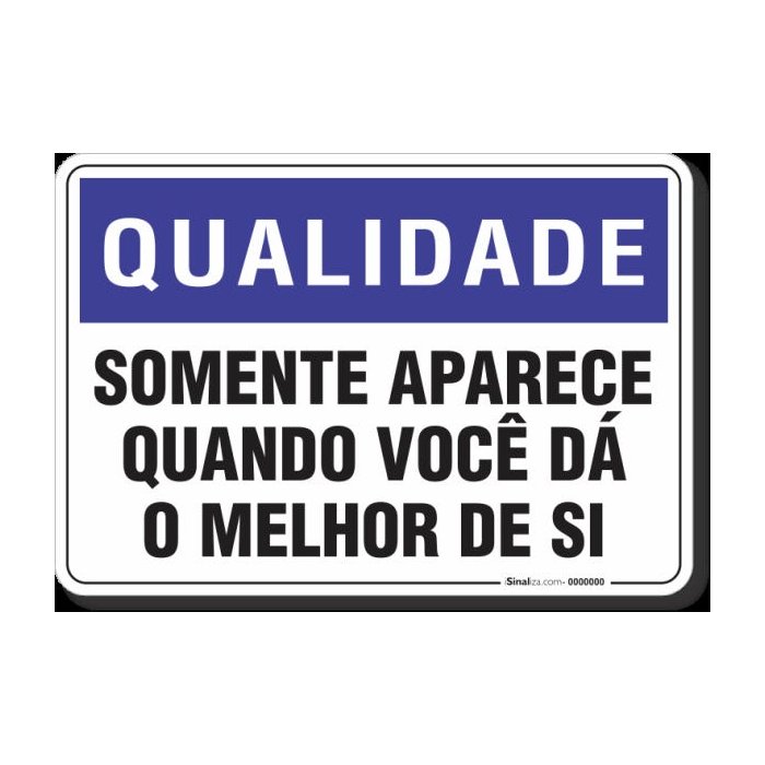 PLACA QUALIDADE SOMENTE APARECE QUANDO VOCÊ DÁ O MELHOR DE SI