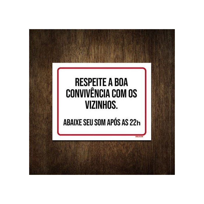 Placa Respeite Boa Convivência Com Vizinhos Som Alto 27x35