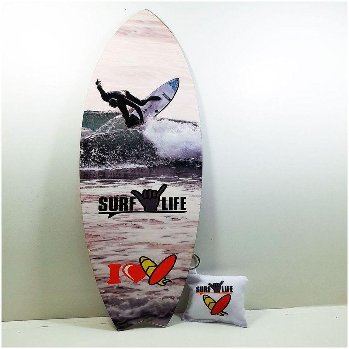 Nosso Kit é composto de uma placa de mdf com formato de prancha de surf personalizada, com esta cultura incrível e apaixonante, e um chaveiro personalizado com o mesmo tema.A placa é toda reta em mdf somente no formato da prancha mesmo, apenas decorativa ela pode ser fixada com fita dupla face, uma excelente opção para dar aquele toque todo especial ao seu ambiente preferido. Características do Produto: