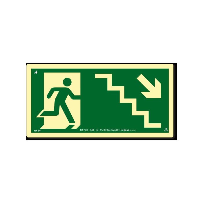 PLACA ROTA DE FUGA SAÍDA ESCADA DESCE A DIREITA FOTOLUMINESCENTE S8