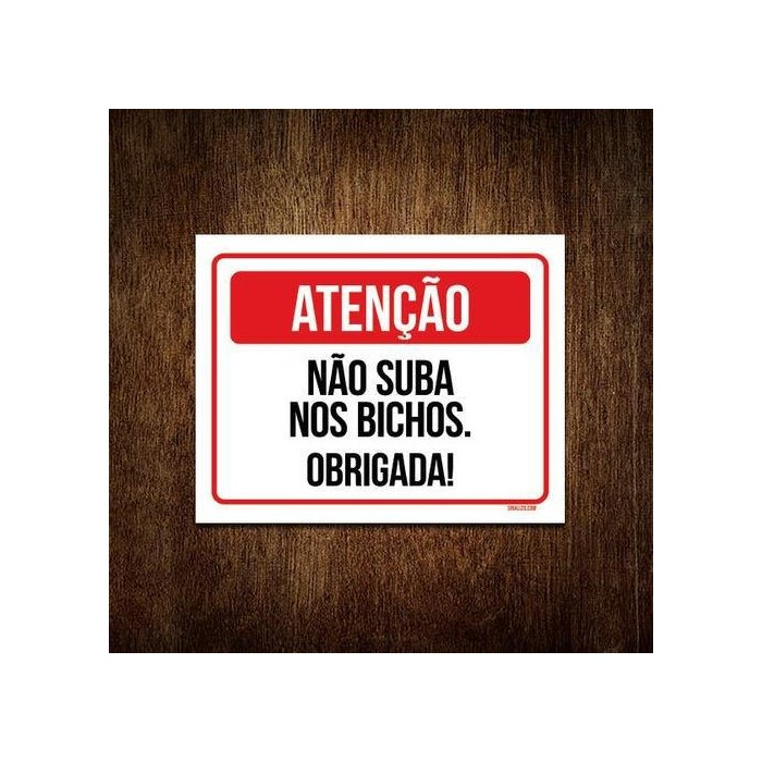 Placa Sinalização - Atenção Não Suba Nos Bichos 27x35