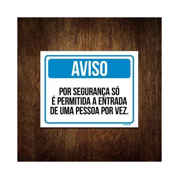 Placa Sinalização Aviso Entrada Uma Pessoa Por Vez 36X46