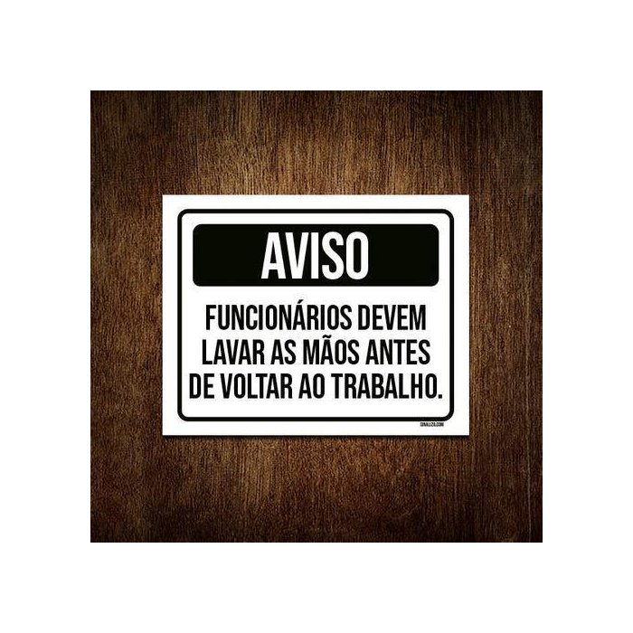 Placa Sinalização - Aviso Funcionários Lavar Mãos 27X35