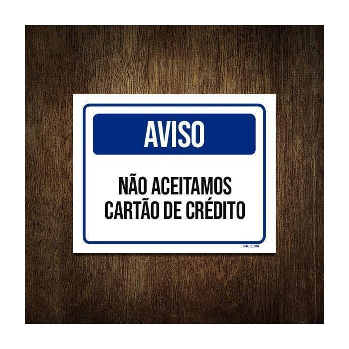 Placa Sinalização - Aviso Não Aceitamos Cartão Crédito 27x35