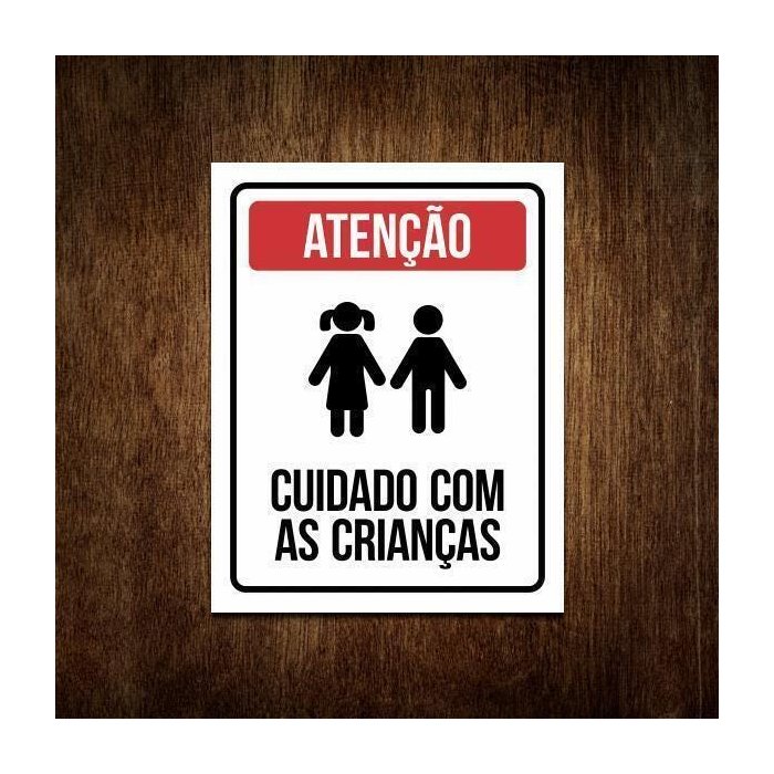 Placa Sinalização Condomínio Atenção Cuidado Crianças 27X35