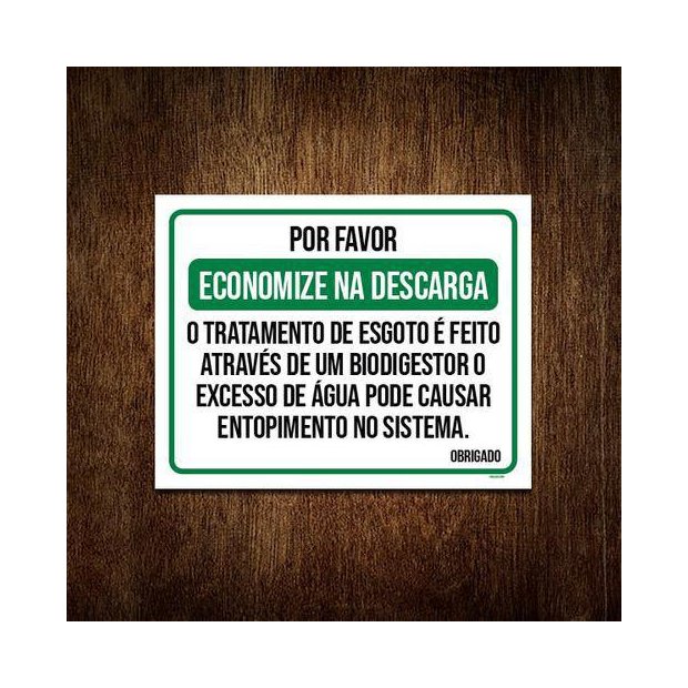 Placa Sinalização - Economize Na Descarga Biodigestor 27x35