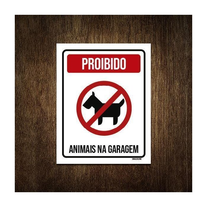 Placa Sinalização Proibido Animais na Garagem 36x46