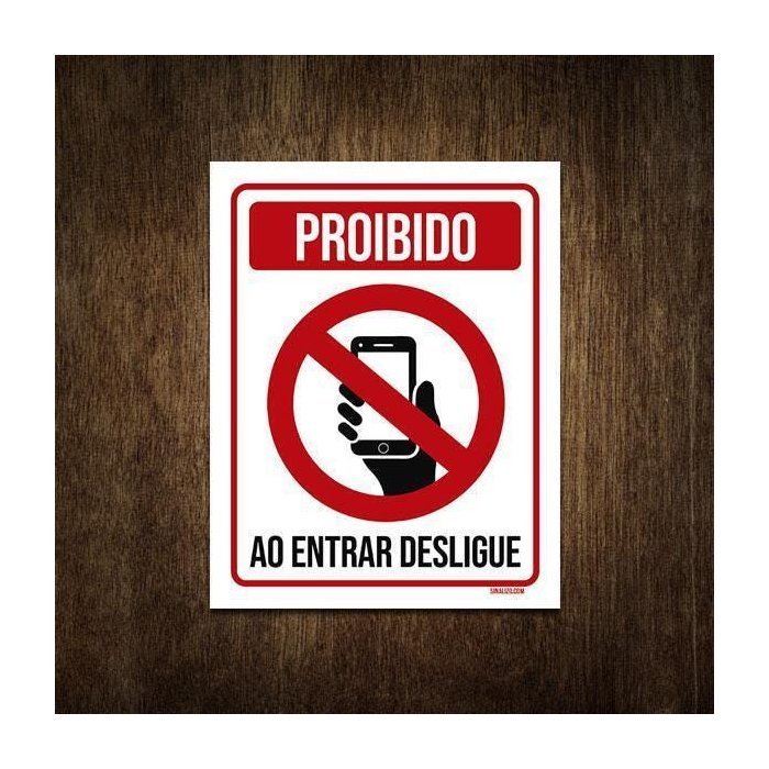 Placa Sinalização Proibido Celular Entrar Desligue 36x46