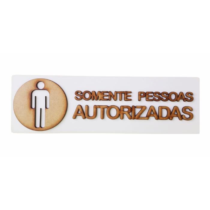 Placa Sinalização Somente Pessoas Autorizadas Aviso Madeira 100% Mdf na Cor Branca