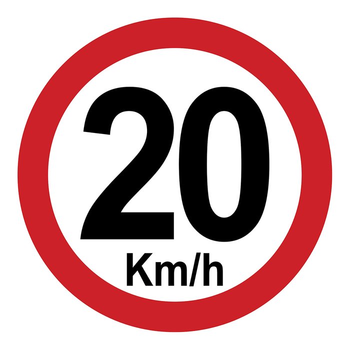 Placa de velocidade máxima permitida 20km/h que indica que o velocidade máxima naquele trecho específico é de até 20km/h.