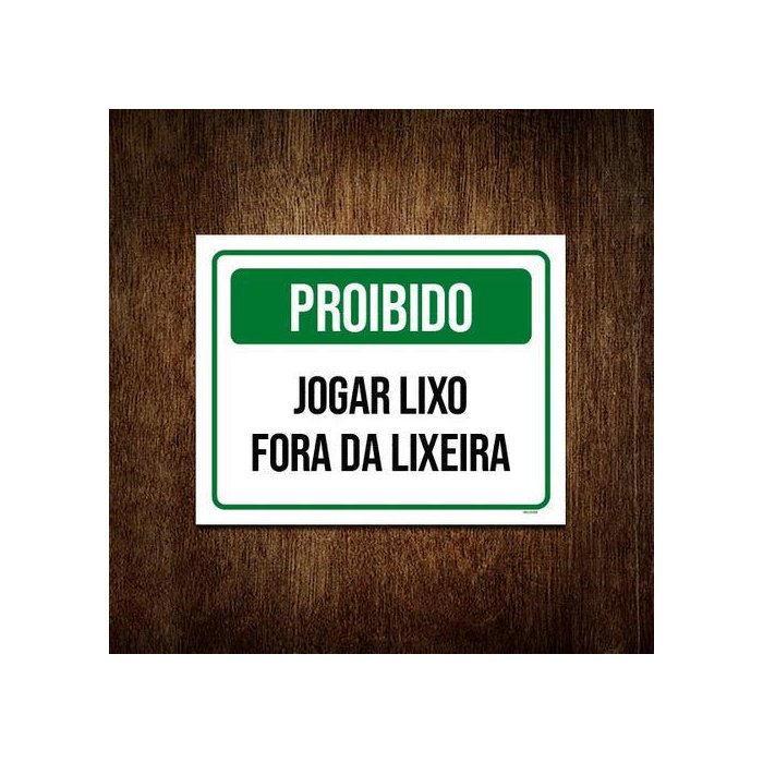 Placa Sinalização Verde Jogar Lixo Fora Da Lixeira 18x23