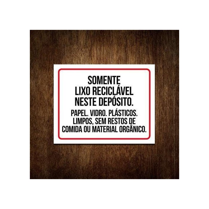 Placa Somente Lixo Reciclável Neste Deposito 36X46