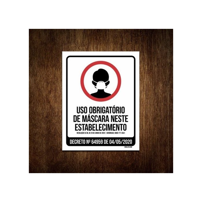 Placa Uso Obrigatório Máscara Estabelecimento Comércio 36x46