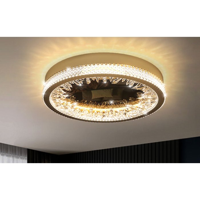 Plafon de Sobrepor Redondo Dourado Cristais com Espelho Dourado