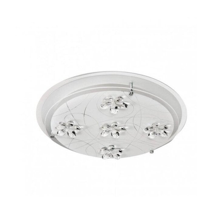 Plafon com vidro jateado e detalhes em cristais, perfeito para decorar ambientes internos com chame de sofisticação. Por ser uma peça bivolt oferece praticidade aliada a uma luz suave e difusa para criar ambientes aconchegantes.
