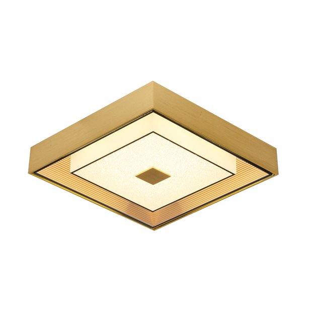 Plafon Dourado Escovado Vidro com Mini Cristais 34cm Led 16W 3000K Bivolt