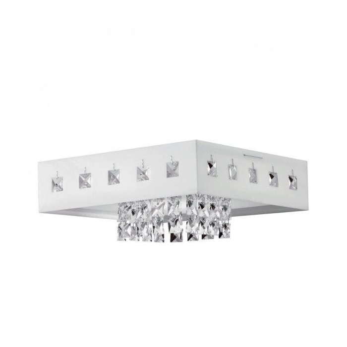 Base em alumínio com pintura epóxi branca. Difusor em acrílico branco. Cristais k9 de alta iridescência. Vida útil de até 30.000 horas. Alta economia de energia. Pode ser usado em diversos ambientes como salas, cozinhas, restaurantes. Combina com diversas cores e materiais.