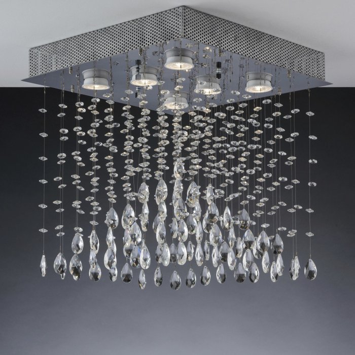 Plafon Sobrepor de Cristais Quadrado Illuminati 6 Lâmpadas Bronzearte Bronzearte