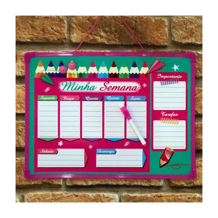 Planner semamal magnético ou quadro de recados e planejamento, ótimo para organizar seu dia a dia e planejar a rotina semanal. Acompamha a caneta e 2 ímãs para colocar fotos e recadinhos.