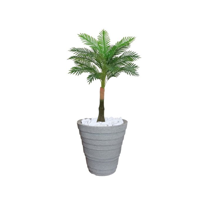 Planta Artificial Árvore Palmeira Real Toque 1,2m kit + Vaso Redondo D. Grafiato Cinza 40cm Verde