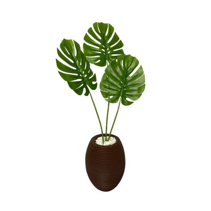 As flores permanentes se mantêm bonitas durante o ano inteiro, não provocam alergias e nem requerem cuidados com luz, rega, troca de terra ou de vaso – basta limpar com um pano úmido de vez em quando e seus arranjos permanentes continuarão sempre lindos!Características do produto• Altura total planta + vaso: 90 cm• Cor da folhagem: Verde escuro• Cor do vaso: Marrom Grafiatto• Altura do vaso: 30 cm• Quantidade: 1Informações importantes• Este anúncio inclui a planta artificial (costela de adão, três folhas), vaso em polietileno idêntico às fotos e pedrinhas decorativas na cor branca;• Devido aos efeitos de iluminação, configurações do monitor, as árvores artificiais podem aparentar pequena diferença na cor;• A planta é enviada separada do vaso, porém para fazer a montagem basta apenas um encaixe;• As hastes são flexíveis e podem ser posicionadas como você desejar. Para facilitar o envio, os galhos do arranjo são enviados com uma ligeira dobra.Faça a sua compra agora mesmo, enviamos sempre dentro de 24h!- Equipe Minha Casa Mais