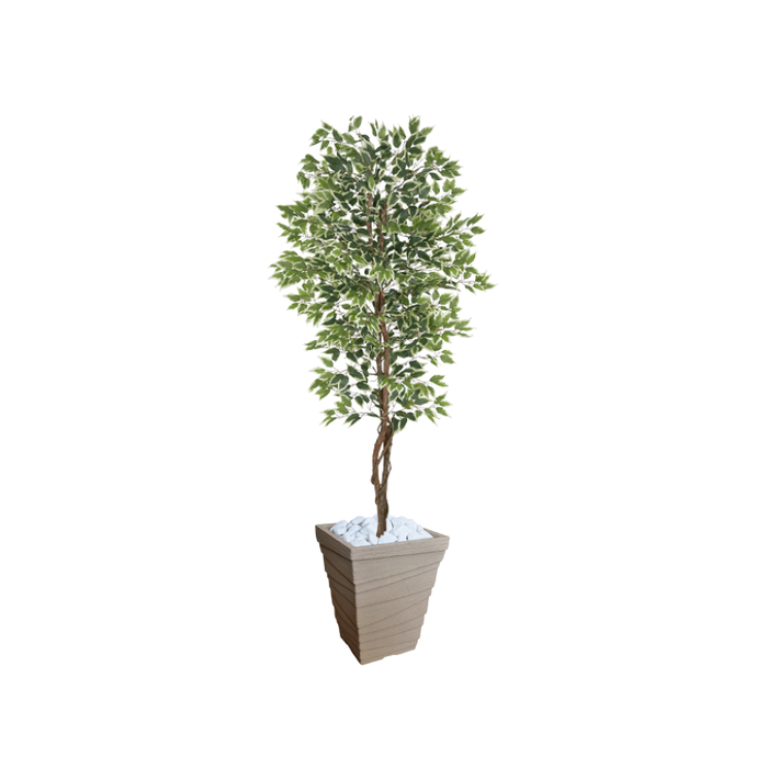 Planta Artificial Ficus Verde Creme 2,10m kit + Vaso Trapezio D. Grafiato Bege 40cm