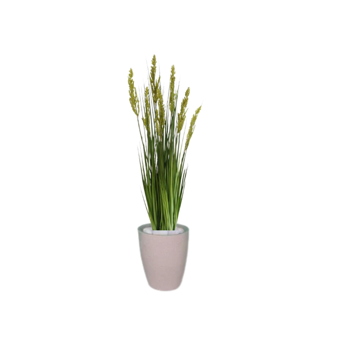 Planta Árvore Artificial Grass com Grão 90 cm Kit + Vaso S. Bege 30 cm Verde Creme