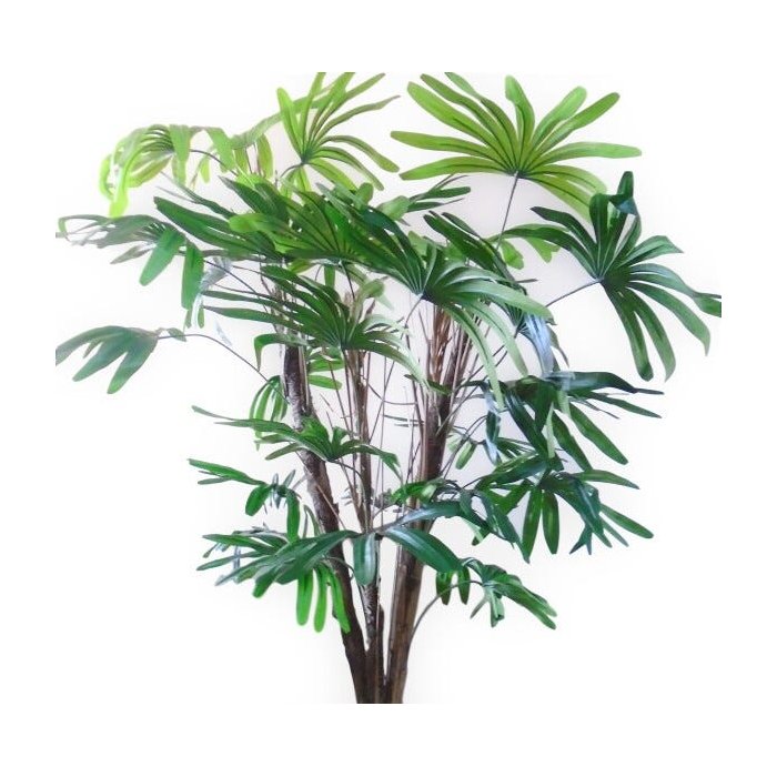 A folhagem dessa planta artificial permanente impressiona pelos detalhes realistas, com um colorido especial, é uma ótima opção para decoração de ambientes. As folhas são verdes escuras, estreitas, frisadas e palmadas que lembram um leque aberto. Possui tronco natural e folhagem de primeira linha.
