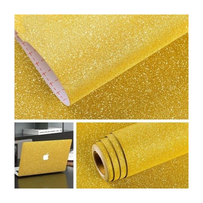 Plástico Adesivo Contact com Glitter 10 metros - dourado