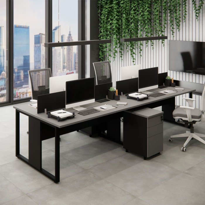Plataforma 2 Gav. e Divisória 4 Pessoas 3,00m Csp Pés Metalf Cor:cinza Sagrado com Preto Cinza Sagrado x Preto