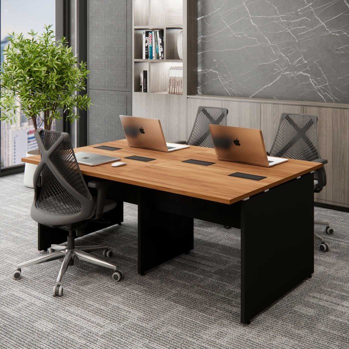 Plataforma de Trabalho 4 Lugares 1,80m X 1,20m Pé Painel F5 Cor:nogal com Preto