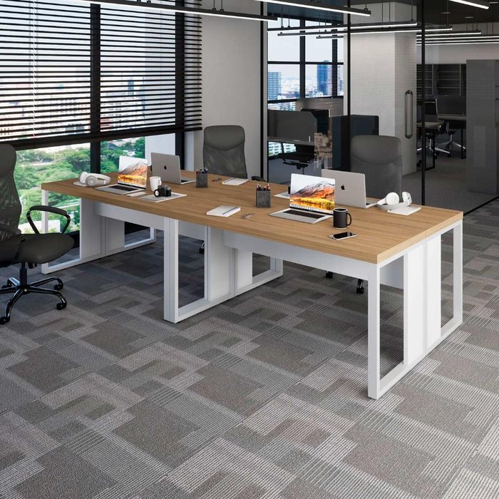 A plataforma de trabalho com pés metálicos é a solução perfeita para quem busca eficiência e um ambiente de trabalho mais produtivo. Projetada para acomodar quatro pessoas, oferece estabilidade e conforto durante longas jornadas, garantindo um desempenho seguro e eficiente. Linha Corporativa de Alto Padrão com foco em proporcionar uma experiência única, produtos exclusivos que refletem a excelência em cada detalhe!