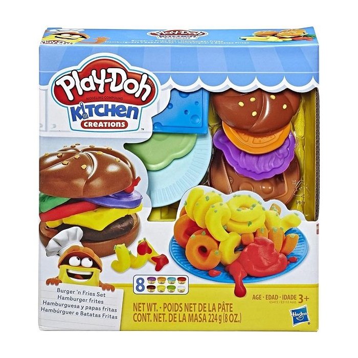 Com os seis Play-Doh e um arco-íris de 8 cores você pode colocar seus hambúrgueres como búfalo cebola tomate ovo imaginário e muito mais.