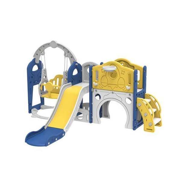 Playground Infantil 6x1 – Escorregador, Túnel, Telescópio, Cesta, Balanço e Espaço Multifuncional Inferior Descrição Transforme o tempo das crianças em momentos inesquecíveis de diversão e aprendizado com o Playground Infantil 6x1 ABM LTDA! Com design moderno e seguro, este playground oferece múltiplas atividades em um só produto, estimulando o desenvolvimento motor, a imaginação e a socialização das crianças. Ideal para uso em áreas internas e externas, ele é perfeito para residências, escolas, creches e espaços recreativos. Atividades Inclusas Escorregador – Com 165 cm de comprimento, proporciona uma descida suave e segura. Túnel Interativo – Incentiva a exploração e estimula a curiosidade. Telescópio Fictício – Estimula o imaginário e a brincadeira criativa. Cesta de Basquete – Diversão garantida com jogos e competições em grupo. Balanço Individual – Com estrutura estável e confortável para uso infantil. Espaço Multifuncional Inferior – Ideal para brincadeiras livres, casinhas ou momentos de descanso. Design e Segurança Estrutura moderna e resistente, com acabamento arredondado para maior segurança. Material de alta durabilidade, ideal para uso frequente. Cores vibrantes e design ergonômico que atrai e estimula as crianças. Especificações Técnicas Modelo: Playground Infantil 6x1 Funções: Escorregador, túnel, telescópio, balanço, cesta e espaço multifuncional Idade recomendada: A partir de 3 anos Dimensões montado: 224 x 170 x 118 cm Comprimento do escorregador: 165 cm Peso máximo suportado: 150 kg
