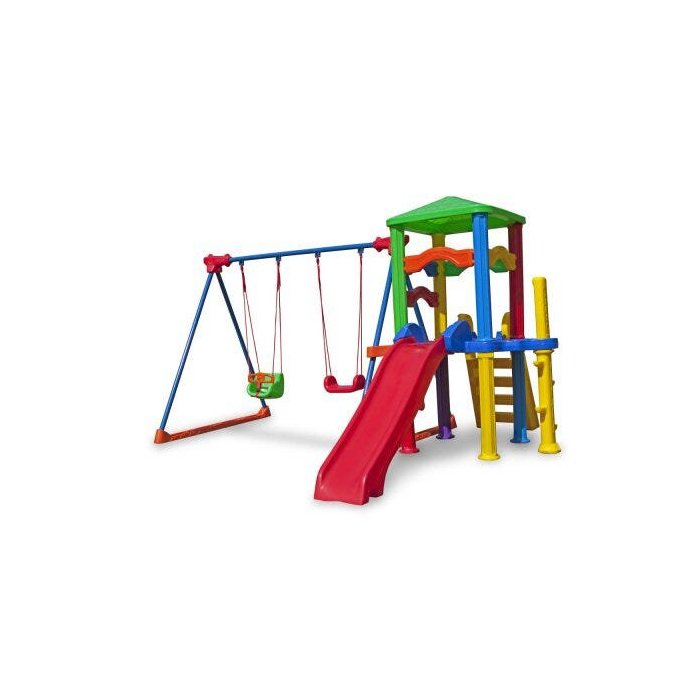 Playground Infantil Plástico com 2 Balanços e Escorregador Millenium Freso Colorido
