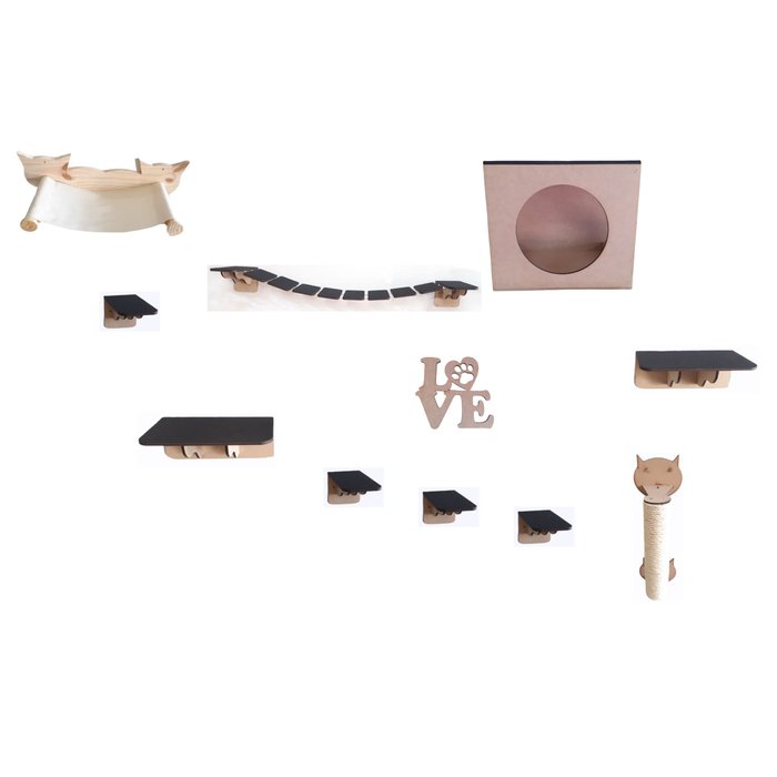Playground Para Gato 10 Pçs Ponte Prateleira Degrau Nicho (B)