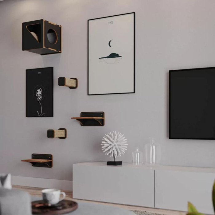 O Playground Fígaro é composto por 1 Nicho Sagu, 2 Prateleiras Lion G e 2 Arranhadores Pino Scar.
