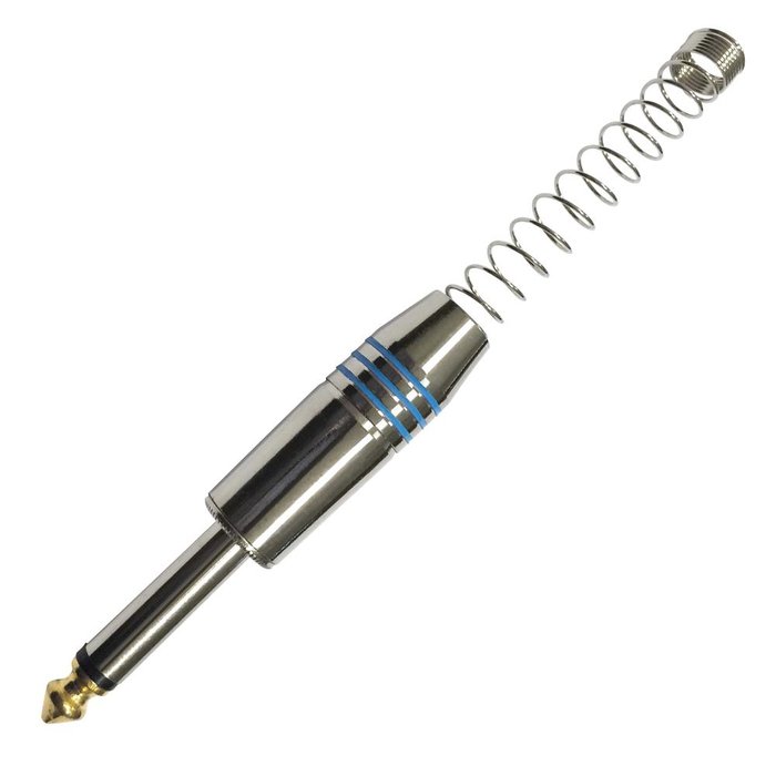 Plug P10 Mono com Mola Espacada Azul com Ponta Gold