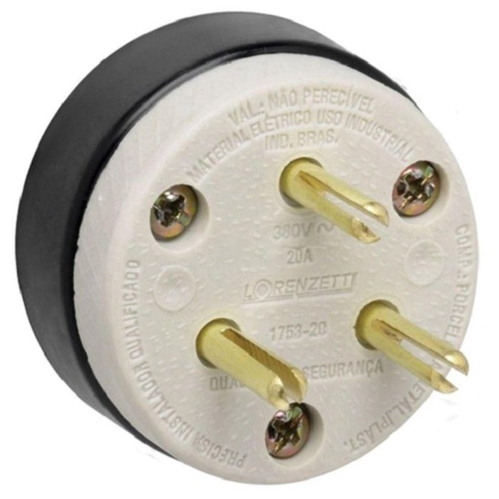 O Plugue Redondo da Lorenzetti é produzido em Porcelana com capa em termoplástico;- Cor: Branco;- Tensão: 380 V;- Corrente: 20 A;- Número de Pólos: 3;- Modelo: 1753-20A;- Marca: LORENZETT