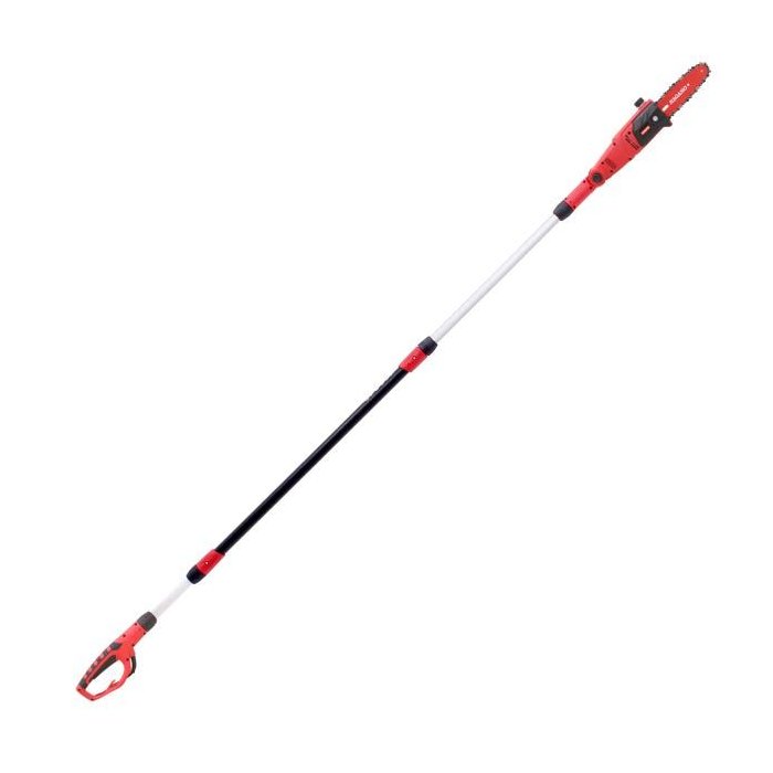 Possui uma haste telescópica que possibilita o operador a manusear o equipamento em lugares altospodendo cortar ramas e galhos com uma distância de até 4 5 metros do solodispensando o uso de escadas.