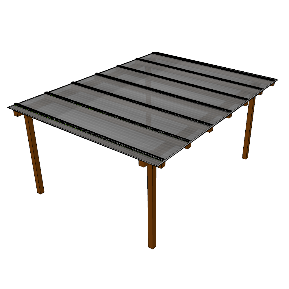 AplicaçõesPode ser aplicado em pergolados/estruturas, claraboias, toldos e garagens desde que seja respeitada as recomendações para a estrutura a seguir Como deve ser a estrutura4,00m de largura x 3,00m de avanço (sentido da caída da água)07 caibros/travessas (espaçamento de 66cm)caimento de 10%Considerando 07 pontos de fixação